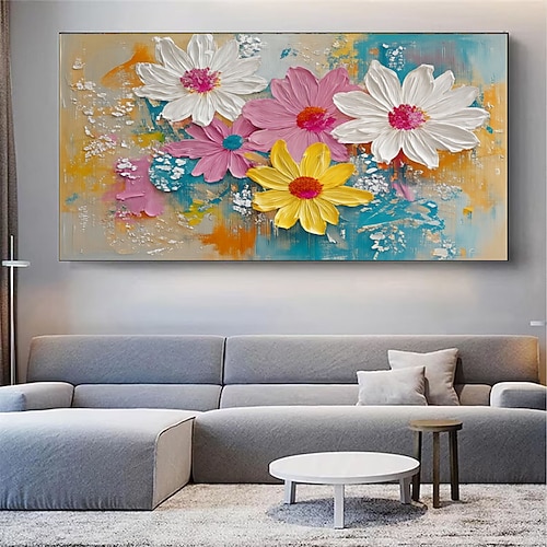 dipinto a mano originale di fiori colorati dipinto a olio su tela dipinto di gruppo di fiori con texture astratta arte murale per l'arredamento della casa con cornice tesa/senza cornice interna