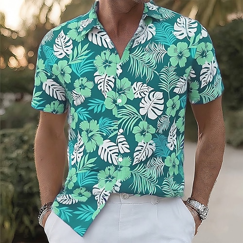 Per uomo Stampa Floreale Fiori tropicali Foglia di palma Camicia hawaiana estiva Camicia con Bottoni Camicia Aloha Manica Corta Hawaiano Vacanza Abbigliamento mare Estate Primavera Collo ripiegato