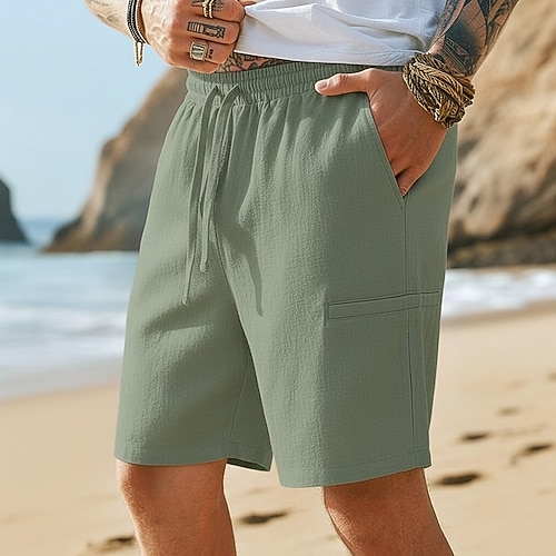 Per uomo Pantaloncini in cotone e lino Shorts Pantaloncini Estivi Shorts da Spiaggia Tasca Coulisse Elastico in vita Tinta unica Comodità Traspirante Lunghezza al ginocchio Casuale Quotidiano Ferie