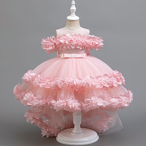 Bambini Ragazze Vestito da Festa Tinta unica Manica Corta Matrimonio Performance Principessa Dolce Poliestere Lunghezza al ginocchio Estate Primavera Autunno 7 - 9 anni Multicolore Bianco Rosa