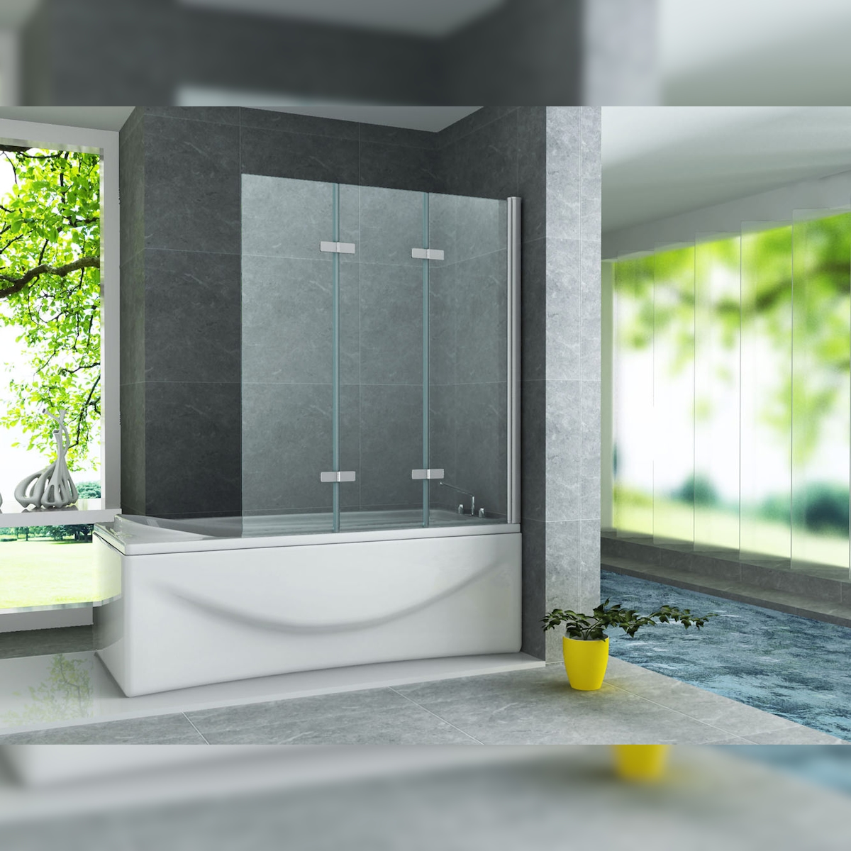 Aloni Badewannenaufsatz mit Seitenwand Duschabtrennung Badewanne Duschwand Ohne Bohren Glaswand Faltbar 130 x 140 cm 6 mm