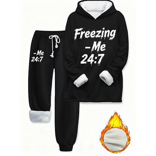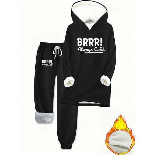 Per donna Quotidiano Elegante Set da due pezzi Tuta Set di Pantaloni Manica Lunga Con Cappuccio Lettera Coulisse Stampato Casuale Quotidiano Nero Rosa scuro Blu Autunno Vestibilità regolare