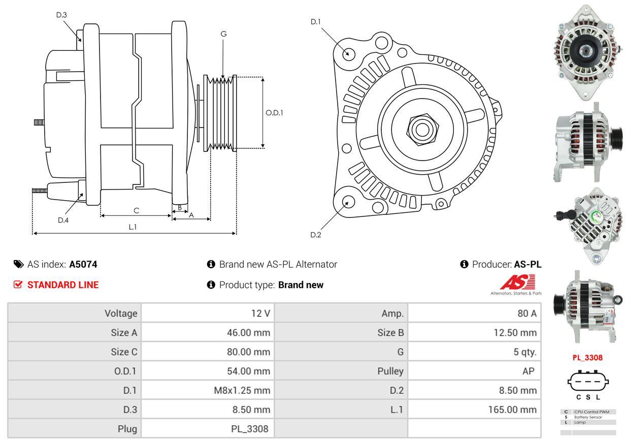 AS-PL Generator A5074 12V 80A für MITSUBISHI SAAB SUBARU A2TB5391 A2TB3091 A2TB6991AM