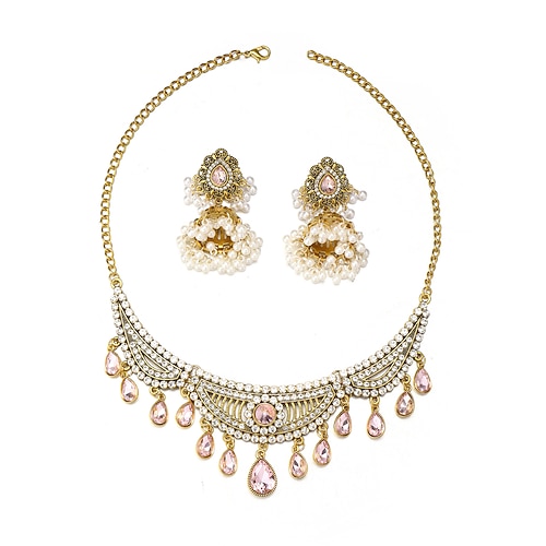elegante collana girocollo e orecchini placcati in oro con pietre preziose e perle multicolori
