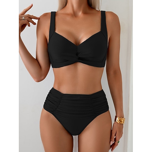 Per donna Costumi da bagno Bikini 2 pezzi Slip brasiliano Costume da bagno Increspato 2 pezzi Scollatura posteriore Sexy Abbigliamento mare Sensuale Liscio Colore puro Senza bretelline Senza maniche