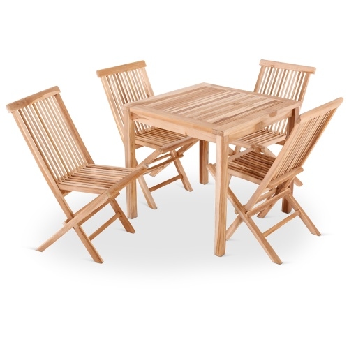 Sitzgruppe - Teak-Holz Set aus 4 Klappstühle, 1 Tisch 70 x 70 cm, Langlebig, massiv & robust für Outdoor, Raburg Marelia L