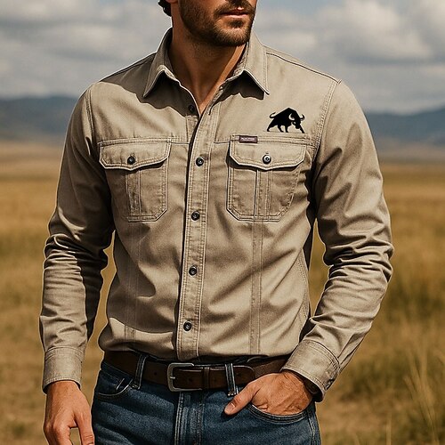 Per uomo Animale Toro Camicia da lavoro Camicia Western Camicia cargo Manica Lunga Pantaloni Tattici Vintage Retrò Sport all'Aperto Abbigliamento da lavoro Primavera Autunno Collo ripiegato Due