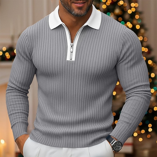 Per uomo Top a Maglia a Coste Polo da Golf Streetwear Casuale Bavero Manica Lunga Essenziale Moderno Semplice Cerniera Bottoni Primavera Autunno Tutte le stagioni Vestibilità regolare Bianco Blu