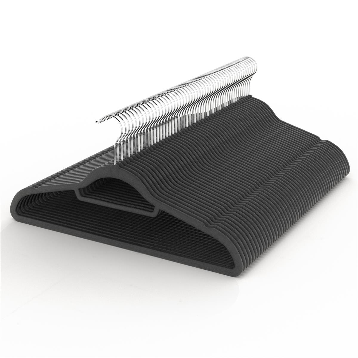 Intirilife Platzsparende Kleiderbügel 50x SAMT SCHWARZ aus Kunststoff mit Edelstahl Haken um 360 Grad drehbar und Krawattenhalter