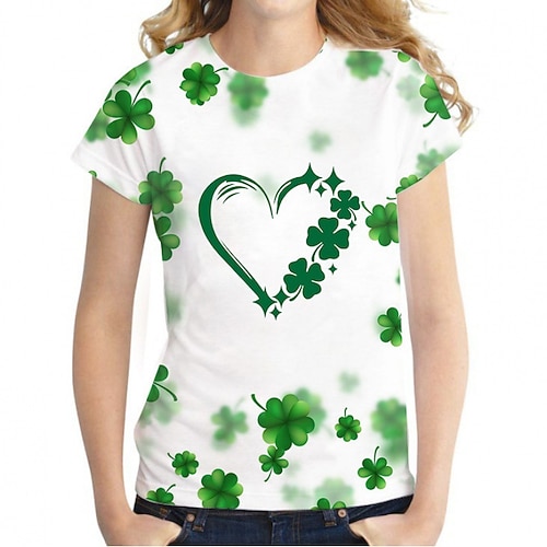 Per donna maglietta Trifoglio Festa di San Patrizio Informale Verde primavera Bianco Verde chiaro Stampa Manica corta Di tendenza Rotonda Standard Primavera estate