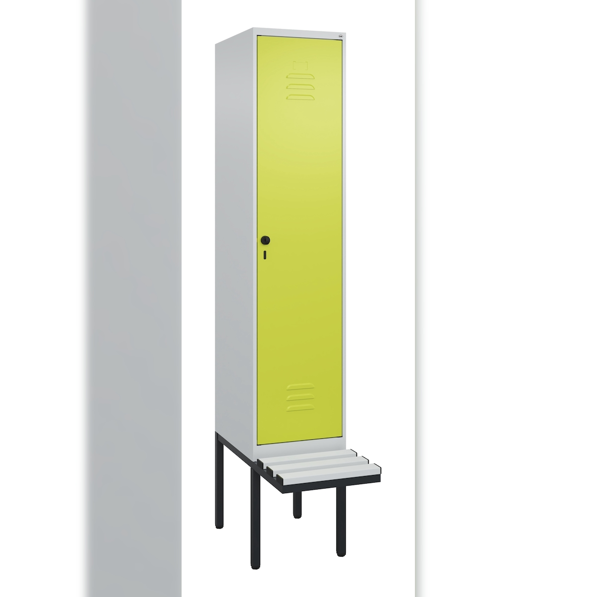 C+P Spind Classic PLUS, Kunststoff schwebende Sitzbank, 1 Abteil, HxBxT 212x40x82cm, Sicherheitsdrehriegel, Hellgrau/Clowngrün von PROREGAL