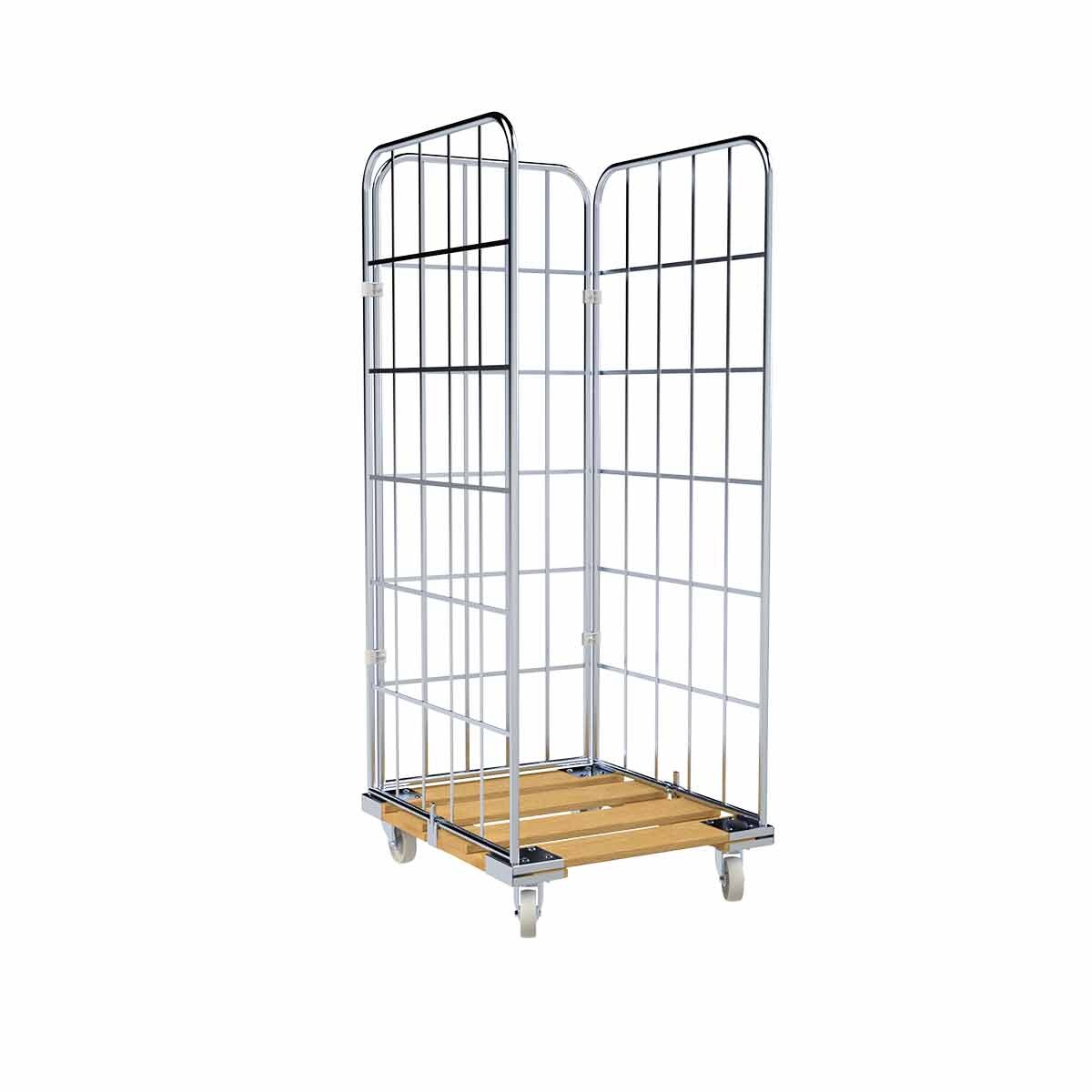 Oswald Transportgeräte Rollbehälter FV, 3-seitig, Nutzhöhe 1.640 mm, Rollplatte aus Holz, 724 x 815 x 1.830 mm, 500 kg