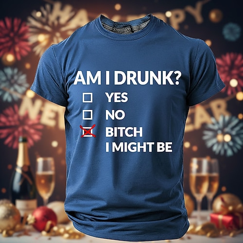 Capodanno sono ubriaco uomo felice anno nuovo fuochi d'artificio 2026 maglietta manica corta maglietta girocollo stampa 3d esagerato designer artistico festa strada club autunno inverno