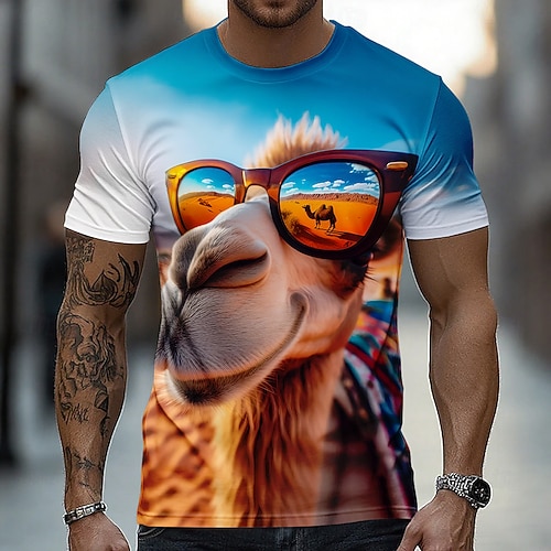 Per uomo Animale Divertente Cammello Maglietta Manica Corta maglietta Stampa 3D Girocollo Camicia Esagerato Designer Feste Ferie 1 2 3 Estate Primavera Abbigliamento S M L XL XXL XXXL