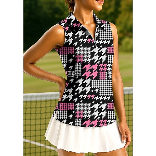 Per donna Geometrico Pied-de-poule Top Maglietta sportiva Polo da golf Maglia da tennis Senza Maniche Cerniera Alta elasticità Traspirante Tennis Pickleball Corsa Collo ripiegato Collo con zip
