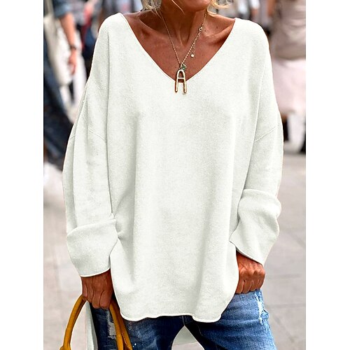 Per donna Camicia Tinta unica Semplice Elegante Casual Spiaggia Manica Lunga Scollo a V Top Regolari Quotidiano Uscire Weekend Nero Rosa Arancione Bianco sporco Grigio chiaro Primavera Autunno Inverno
