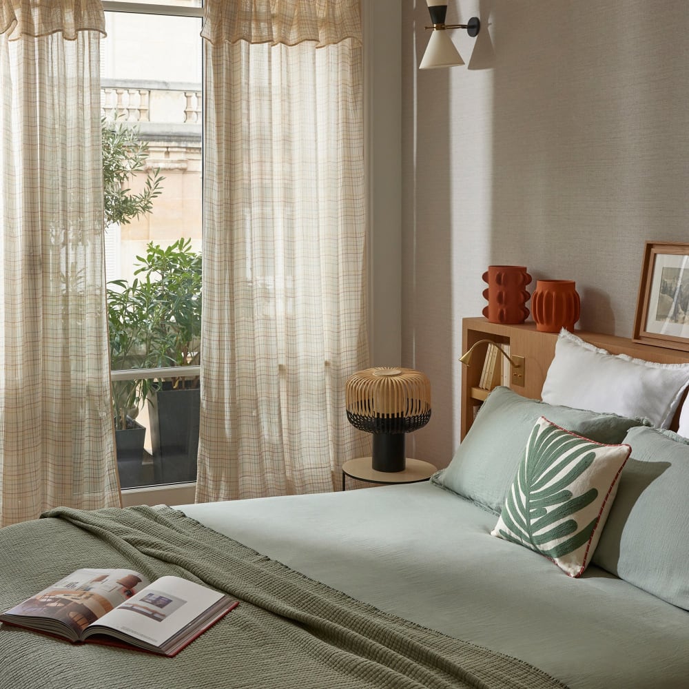 Housse de couette 75% coton 25% lin vert amande 140 x 200 cm
