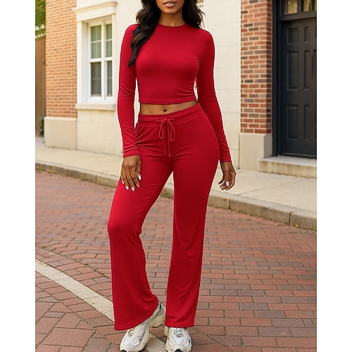 Per donna Set di tute e pullover Tuta da 2 pezzi Abiti da salotto Coulisse Tinta unita Completo Abbigliamento Autunno Rosa Chiaro Rosa Escursionismo Lavoro All'aperto Leggero Manica Lunga Sport