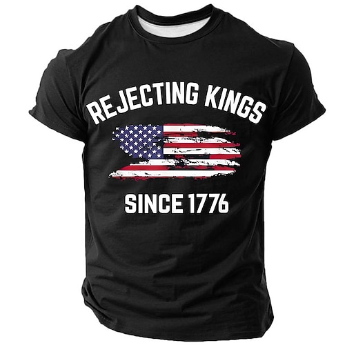 Maglietta Divertente Patriottica 'Rifiutiamo i Re dal 1776' per il 250° Anniversario dell'America T-shirt Grafica della Bandiera USA per il Giorno dell'Indipendenza Libertà per Uomini Abbigliamento S