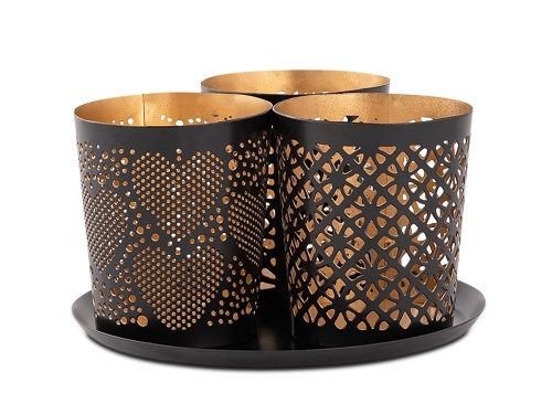 Amagohome Kerzenhalter 3er Set Kerzenständer Teelichthalter rund schwarz gold