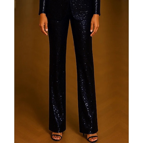 Giacca in finta pelle da donna pantaloni da suit taglio dritto formale ospite di matrimonio formale serale in paillettes a righe eleganti semplici lunghezza alla caviglia