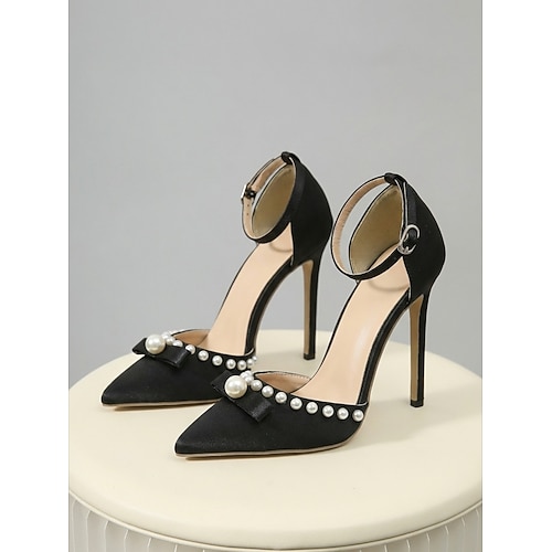 scarpe con tacco a spillo decorate con perle nere da donna - eleganti décolleté a stiletto per gli invitati ai matrimoni in città