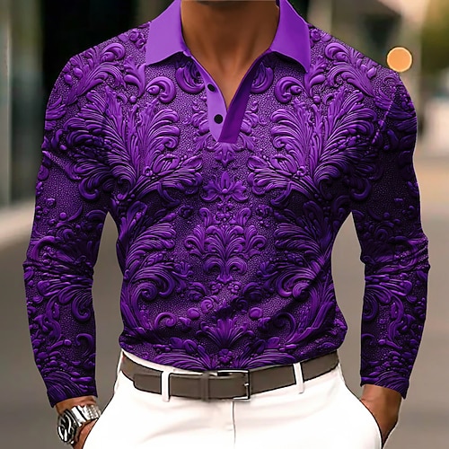 Per uomo Floreale Polo Manica Lunga Magliette polo Bavero Business Casual Athleisure Abbigliamento quotidiano Stampa 3D Bottoni Primavera Autunno Inverno Blu Viola Arancione