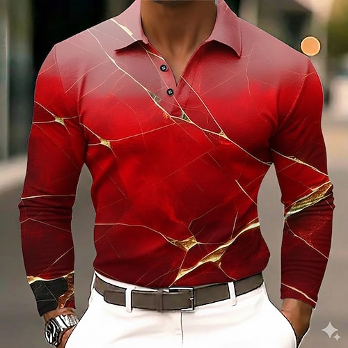 Per uomo Geometrico Polo Manica Lunga Magliette polo Camicie con Colletto Business Casual Affari Athleisure Abbigliamento quotidiano Stampa 3D Bottoni Primavera Autunno Inverno Rosso Blu Arancione