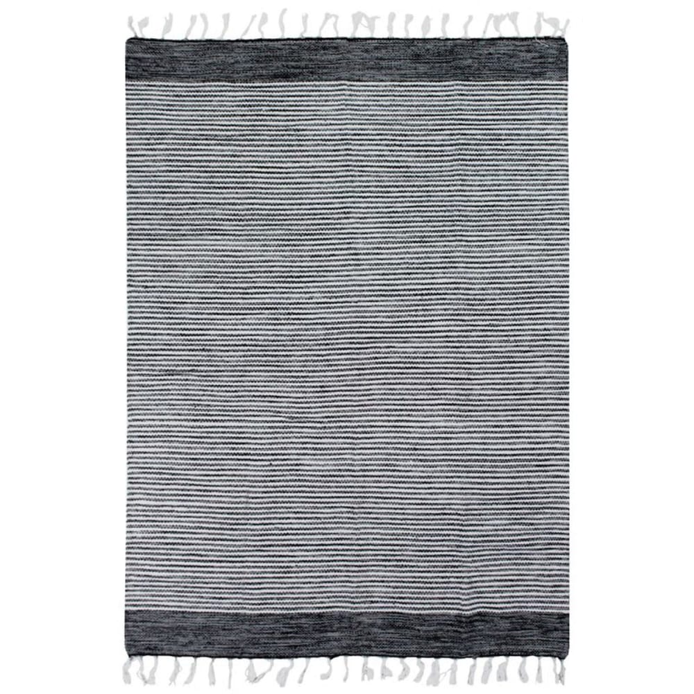 Tappeto in 100% cotone a strisce nero-grigio-bianco 160x230