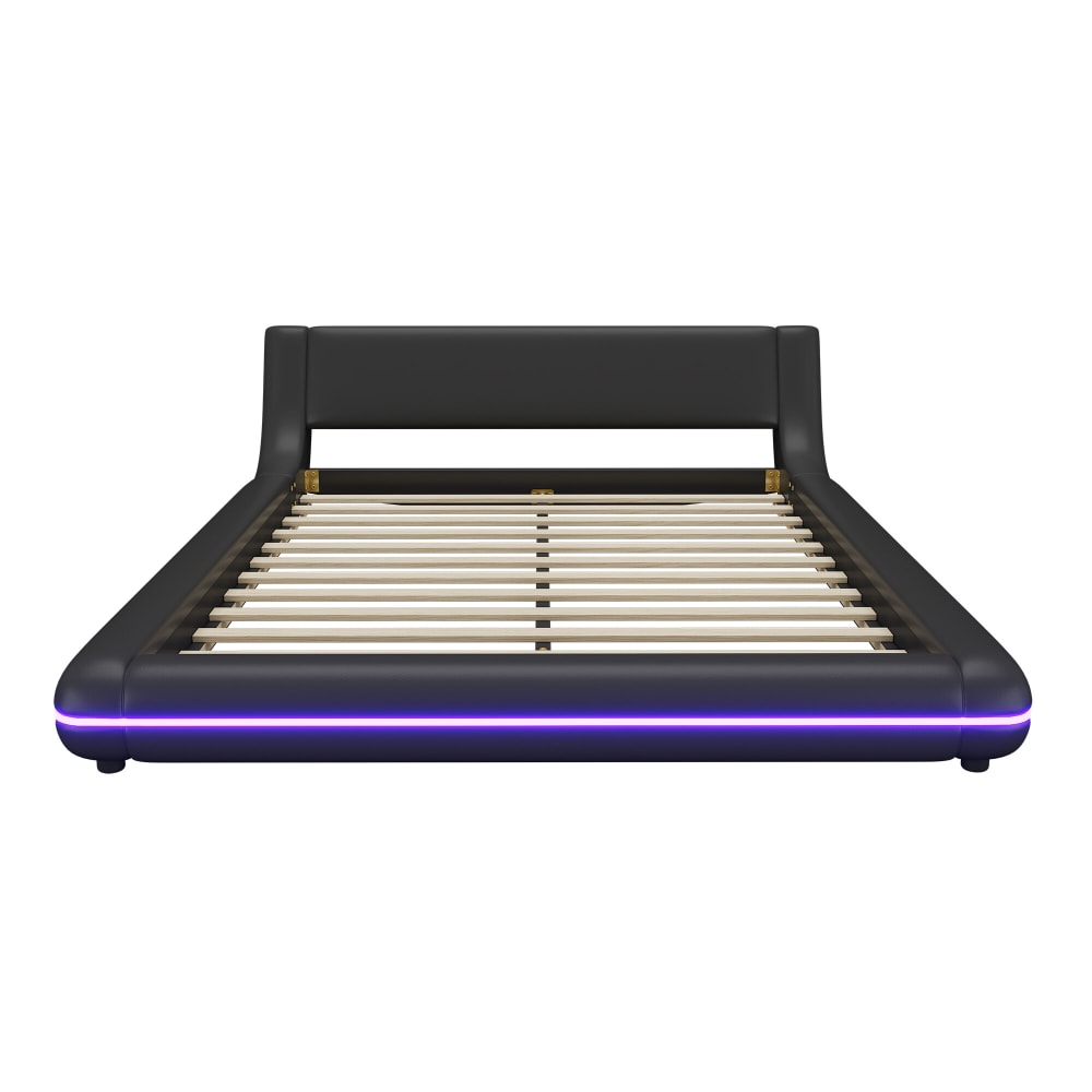 Letto basso 140x200 cm in PU nero con illuminazione LED integrata