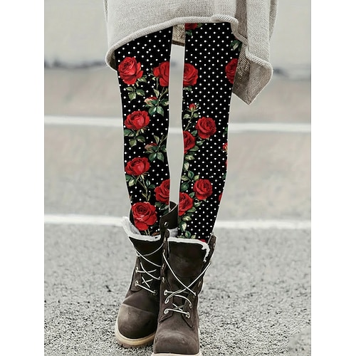 Leggings da donna vichinghi, stile vintage, casual, a vita alta, con stampa floreale, comodi, morbidi ed elastici, adatti per tutti i giorni, all'aperto, per le vacanze, neri, primavera e autunno,
