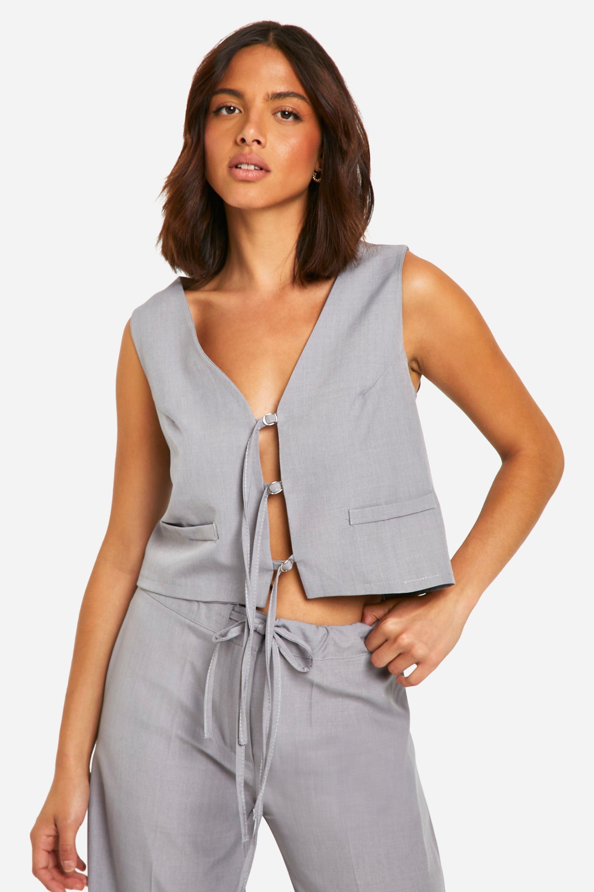 Boohoo Womens Tie Front Tailored Waistcoat - Grey - Size 14 UK | Boohoo Sale | Discount Designer Brands