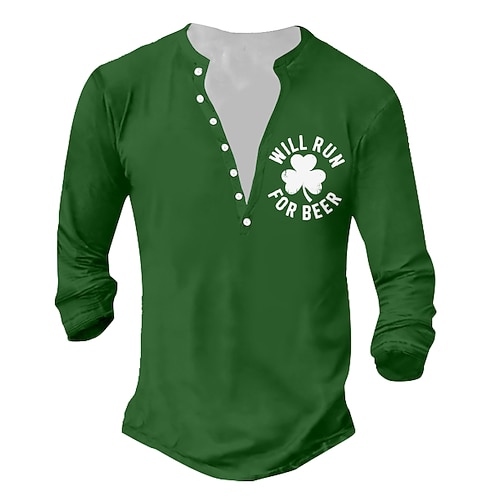 Per uomo San Patrizio Grafico Quadrifoglio Maglietta Maglia Henley Manica Lunga Vintage Designer Elegante Casuale Quotidiano All'aperto Primavera Primavera Estate Nero Bianco Verde Henley Maglietta