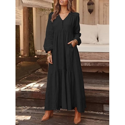 Per donna Nero Giallo Blu Estate Primavera Abito maxi Abiti ispirati al lino Vestito Casual Vestito Estivo Essenziale Moderno Quotidiano Weekend Vestibilità comoda Semplice Scollo a V