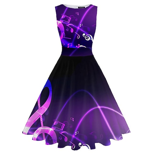 Per donna Retrò Stile anni '50 Abito vintage Vestito longuette Giornaliero Appuntamento Increspato Stampa Note Girocollo Senza maniche Taglia piccola Estate Primavera 2023 Nero Bianco S M L XL