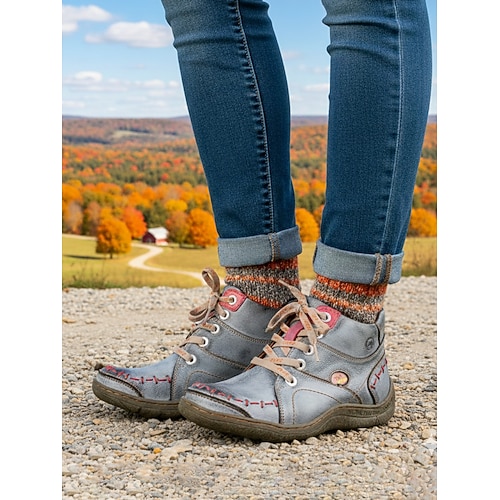 stivaletti da donna in vera pelle verde con lacci – stivaletti bassi in stile rustico da fattoria per il raccolto autunnale, le passeggiate all'aperto e l'abbigliamento casual
