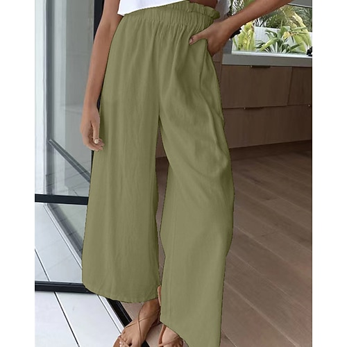 Per donna Finto cotone e lino Pantaloni Eleganti Pantaloni Palazzo Moda Streetwear Lunghezza intera Naturale Semplice Tasca Elastico in vita Comodo All'aperto Streetwear Uscire Rosa chiaro Rosso