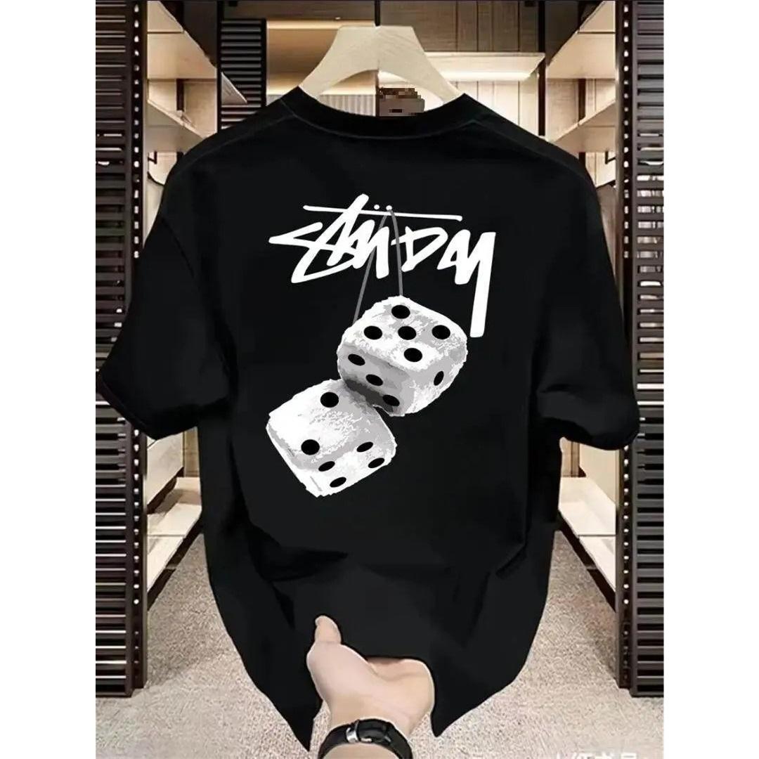 Nouveau T-shirt en Coton Pur pour Homme, Manches Courtes, Imprimé Dessin Animé à la Mode, Manches Mi-longues, Col Rond Lâche Surdimensionné Couche de