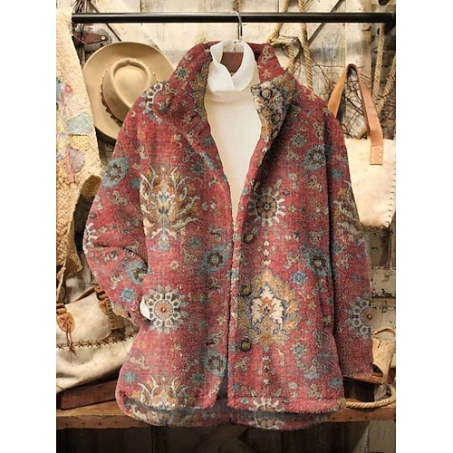 Per donna Giacca in Pile Giacca Casual Confortevole Traspirante Tasca Stampato Casual Floreale Vacanza Streetwear Casuale Abbigliamento quotidiano Cerniera Regolare Collo ripiegato Vestibilit