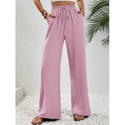 Per donna Pantaloni Pantaloni Estivi Pantaloni Larghi Vacanza Moda Streetwear Lunghezza intera Vita Alta Semplice Coulisse Tasca Gamba larga Comodità Morbido Confortevole Elasticizzato All'aperto