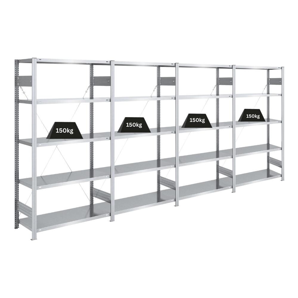 PROREGAL Schwerlastregal Silver Mamba Made in Germany | HxBxT 200x400x40cm | 5 Ebenen je 150kg Fachlast | Verzinkt