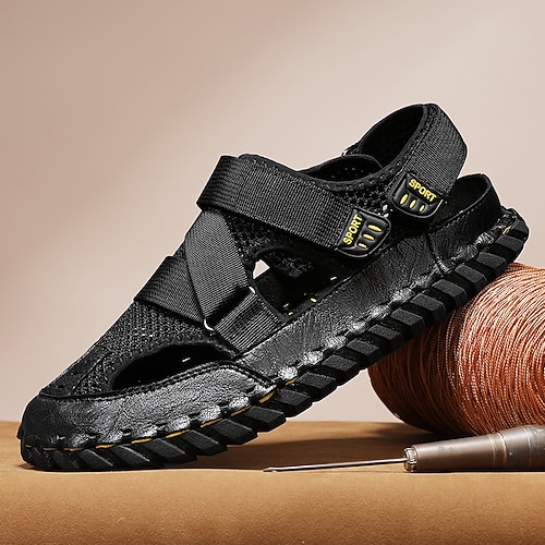 sandali da uomo in similpelle marrone scuro con cinturini incrociati, scarpe leggere da esterno per le vacanze al mare, perfette per le giornate estive attive