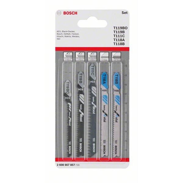 Stichsägeblatt-Set Wood and Metal Basic, 5-teilig, Einnockenschaft