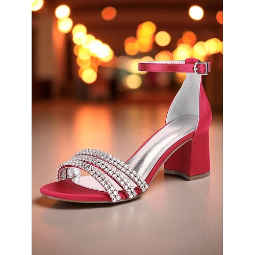 sandali da donna con tacco a blocco in raso viola e cinturini in strass - eleganti scarpe eleganti con punta aperta per cocktail party e occasioni formali