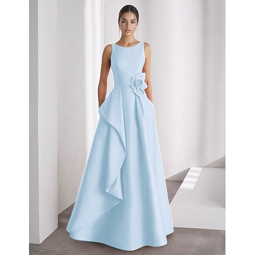 Abiti da sposa A-Line eleganti per invitati al matrimonio abito da invitata con schiena a cowl senza maniche collo a giro lunghezza campagna