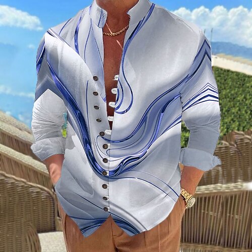 Per uomo Sfumatura Onde Marmo Camicia Camicia con colletto alla coreana Manica Lunga Casual Vacanza Abbigliamento quotidiano Uscire Primavera Autunno Collo alla coreana Colletto alla coreana
