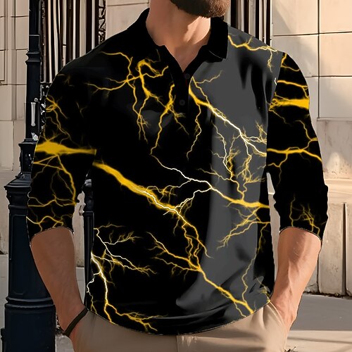 Per uomo Fulmini Polo Manica Lunga Magliette polo Bavero Casual All'aperto Streetwear Athleisure Abbigliamento quotidiano Stampa 3D Bottoni Primavera Autunno Inverno Giallo Rosso Verde