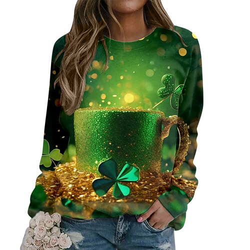 st. felpa con cappuccio grafica con stampa trifoglio irlandese del giorno di patrick per donna, adulto, stampa 3d, 100% poliestere, festa, festival