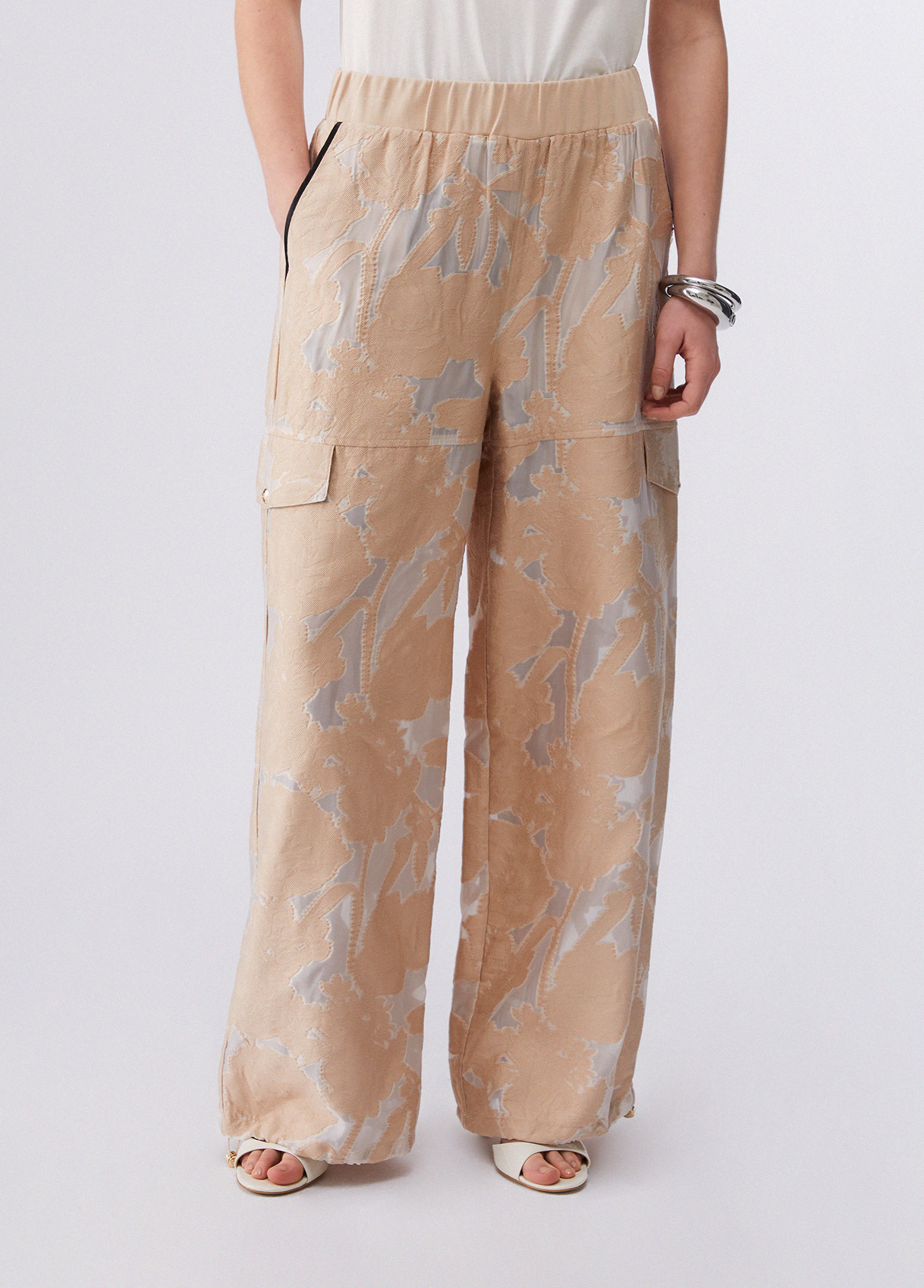Liu Jo Pantalon En Organza Jacquard, Beige, M