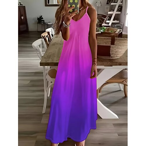 Per donna Abito maxi Vestito Estivo Abito a trapezio Abito Sottoveste Vacanza Casual Boho Spiaggia Vestibilità comoda Ombre Grafico Senza Maniche Scollo a V Blu Arancione Ametista Estate Primavera